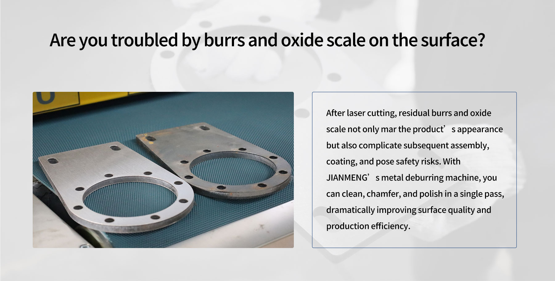 JM è un produttore leader specializzato in Metal Deburding Machine. Metal Deburding Machine è un dispositivo industriale appositamente progettato per la rimozione di bara, bordi affilati e strati di ossido da parti in acciaio metallico, piastre metalliche e pezzi. La macchina per deburing in metallo è ampiamente utilizzata nella lavorazione dei metalli, nella produzione di macchinari, nei componenti automobilistici, nella struttura in acciaio, nella costruzione navale e nei mobili elettrici.