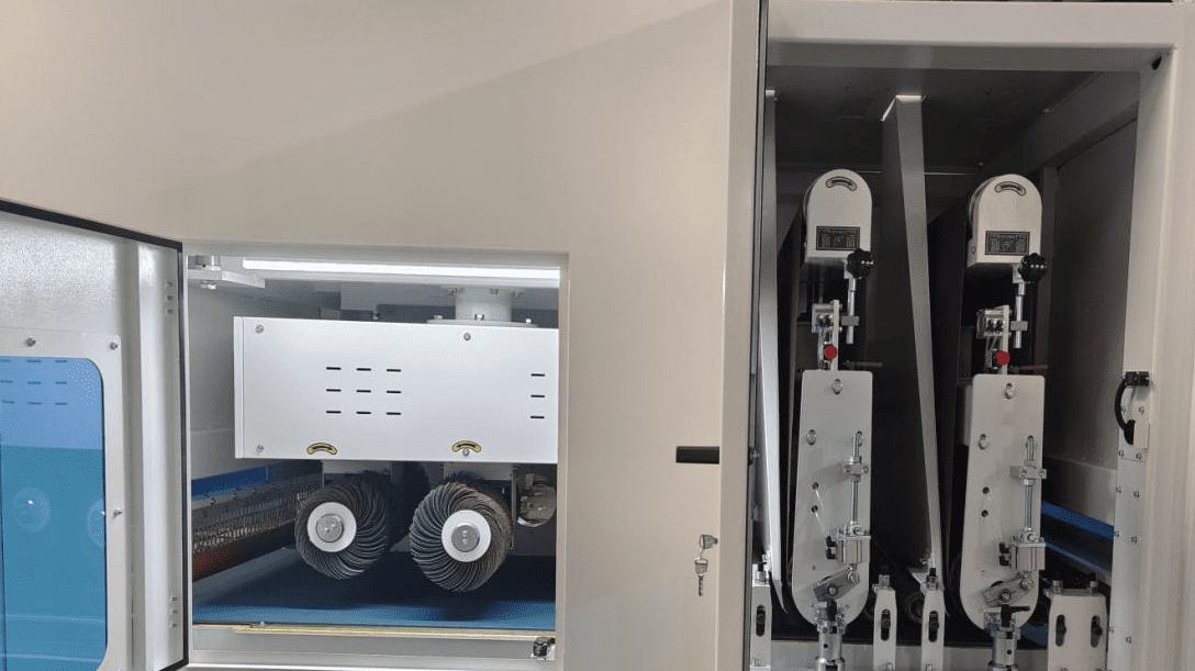 La macchina per deburdo e smussatura è specificamente progettata per il trattamento superficiale dei componenti in acciaio al carbonio. Presenta una combinazione innovativa di due serie di ampie cinture abrasive per il debusting e quattro spazzole rotanti universali per la smussatura. Questo design garantisce una rimozione efficiente e precisa di barate di superficie, raggiungendo il bordo e la spazzolatura superficiale, migliorando significativamente la qualità della superficie e l'aspetto del pezzo. La macchina per sfacciamenti e spazzolatura soddisfa i requisiti di precisione e di qualità del trattamento della superficie in acciaio al carbonio in vari settori, migliorando sia l'efficienza di produzione che il valore del prodotto. I parametri possono essere regolati in base alle diverse esigenze di elaborazione e gli abrasivi adatti possono essere selezionati di conseguenza. La macchina per deburing in metallo è dotata di un collettore di polvere bagnato da 5,5 kW. Metodo di rimozione della polvere: la polvere generata durante il funzionamento viene effettivamente estratta attraverso una porta di raccolta della polvere, eliminando la maggior parte della polvere, prevenendo potenziali pericoli di esplosione della polvere e mantenendo pulita la struttura interna.