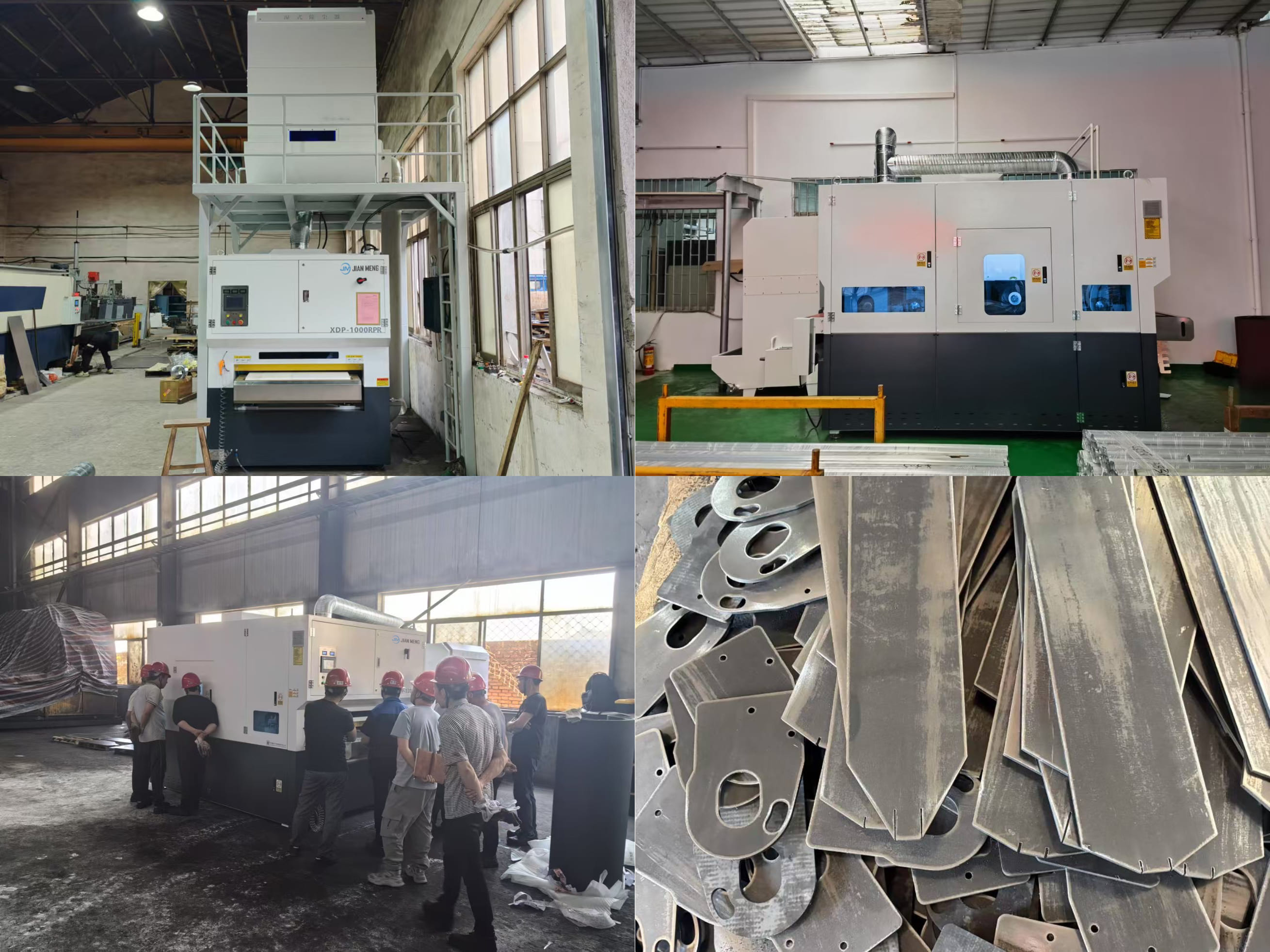Un cliente stava utilizzando una macchina da taglio laser da 6 kW per elaborare piastre in acciaio a carbonio spesso 20 mm, che ha prodotto baratte pesanti lungo i bordi, influenzando la successiva qualità di saldatura e rivestimento. Per affrontare questo problema, per il test è stata utilizzata la nostra macchina di debuster e smussatura dotata di ampie cinture abrasive e spazzole rotanti universali. In un singolo passaggio, la macchina ha rimosso in modo efficiente le bara dalle piastre spesse, raggiungendo contemporaneamente il bordo uniforme smusso e una finitura superficiale spazzolata. I risultati hanno mostrato bordi lisci e senza bava e un aspetto superficiale significativamente migliorato. Il cliente era molto soddisfatto del risultato, rilevando un sostanziale miglioramento sia dell'efficienza che della coerenza per l'elaborazione spessa. La macchina supporta le regolazioni dei parametri flessibili ed è ideale per il deburdo e la finitura superficiale di vari materiali metallici spessi.