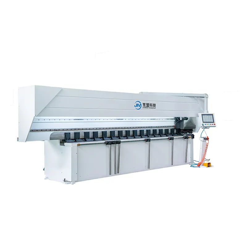 La stozzatrice verticale per scanalature a V ad alta velocità di JM è composta da base macchina, traversa, albero lama, sistema CNC, sistema di pressa idraulica per piastre, aria compressa e sistema di raffreddamento.